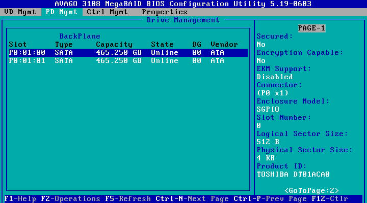 LSI 사의 3108 칩셋을 사용하는 카드의 webbios를 구경해보겠다.